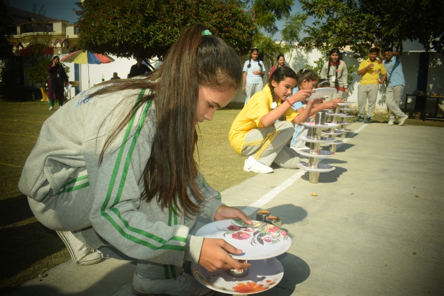 BALANCING PLATES & GLASS - GIRL STUDENTS